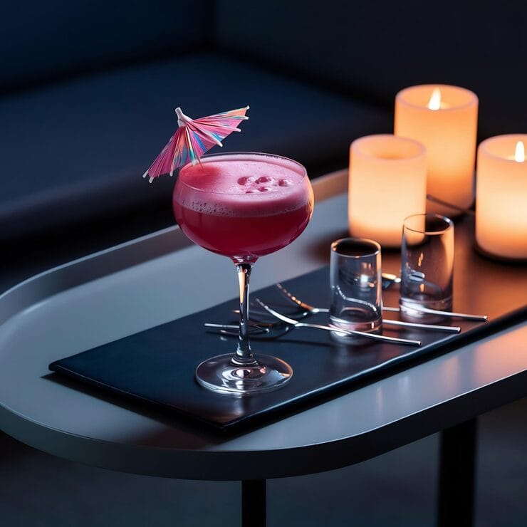 Kokosnusssirup, Ananassaft, Sahne, Grenadine und Eis