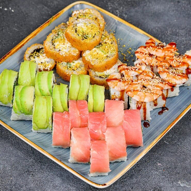 6 Stk. Sake Maki, 2 Stk. Sake Nigiri, 8 Stk. I.O Sake Kappa, 5 Stk. Sake Tempura Roll